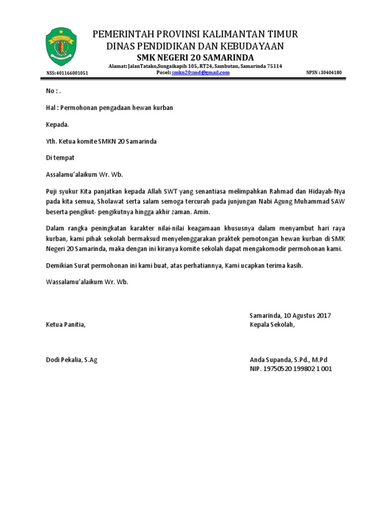 Contoh surat permohonan hewan qurban doc surat ras.